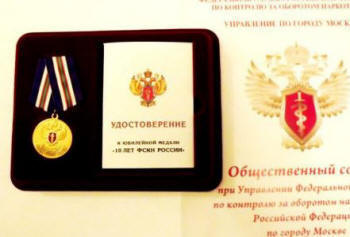 Юбилейная медаль 10 лет ФСКН России.